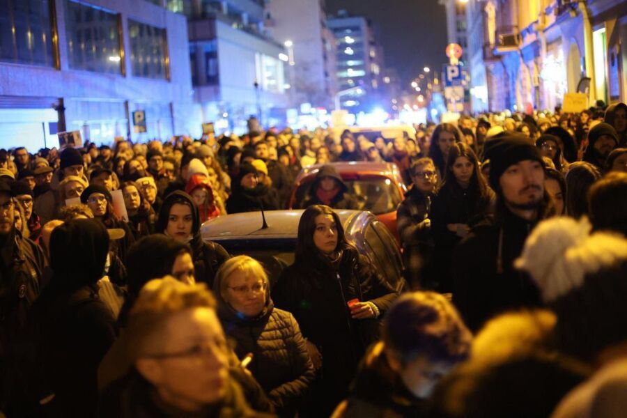 Люди несли в руках плакаты с лозунгами «Хватит изнасилований», «Солидарность», «В моей душе — дыра», и другими призывами остановить насилие над женщинами. В знак памяти о погибшей девушке с 18:00 до 21:00 была отключена подсветка Дворца.