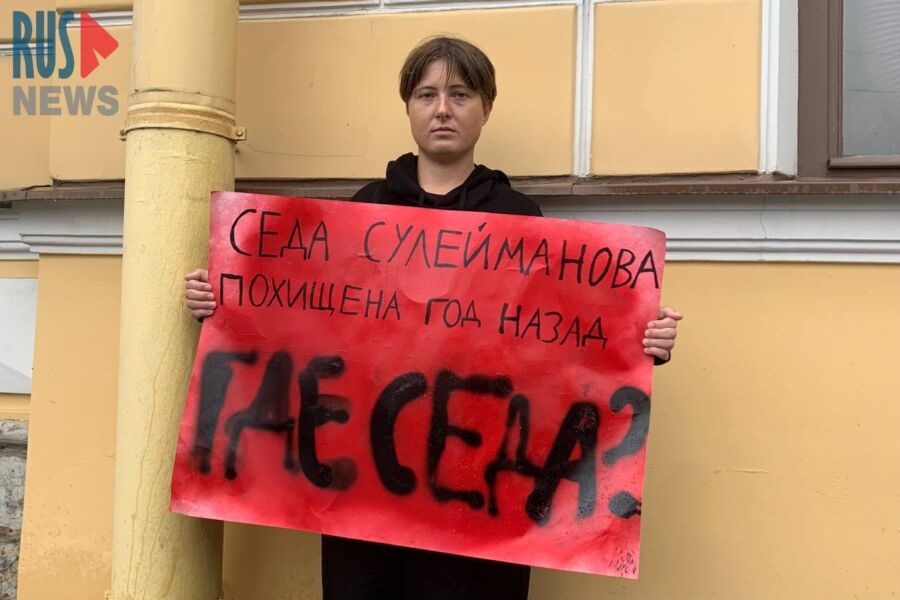 Лена Патяева, подруга пропавшей год назад чеченки Седы Сулеймановой, вышла с пикетом к зданию Главного следственного управления СК РФ по Санкт-Петербургу, сообщает RusNews.
